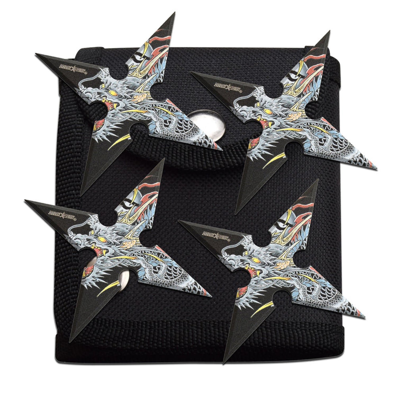 The incredible 4-Pack 4 Points Throwing Stars are made from heavy, high-grade stainless steel. This ninja star is forged and sharpened to have greater mass, each star weighs over 2 ounces with supreme balance.