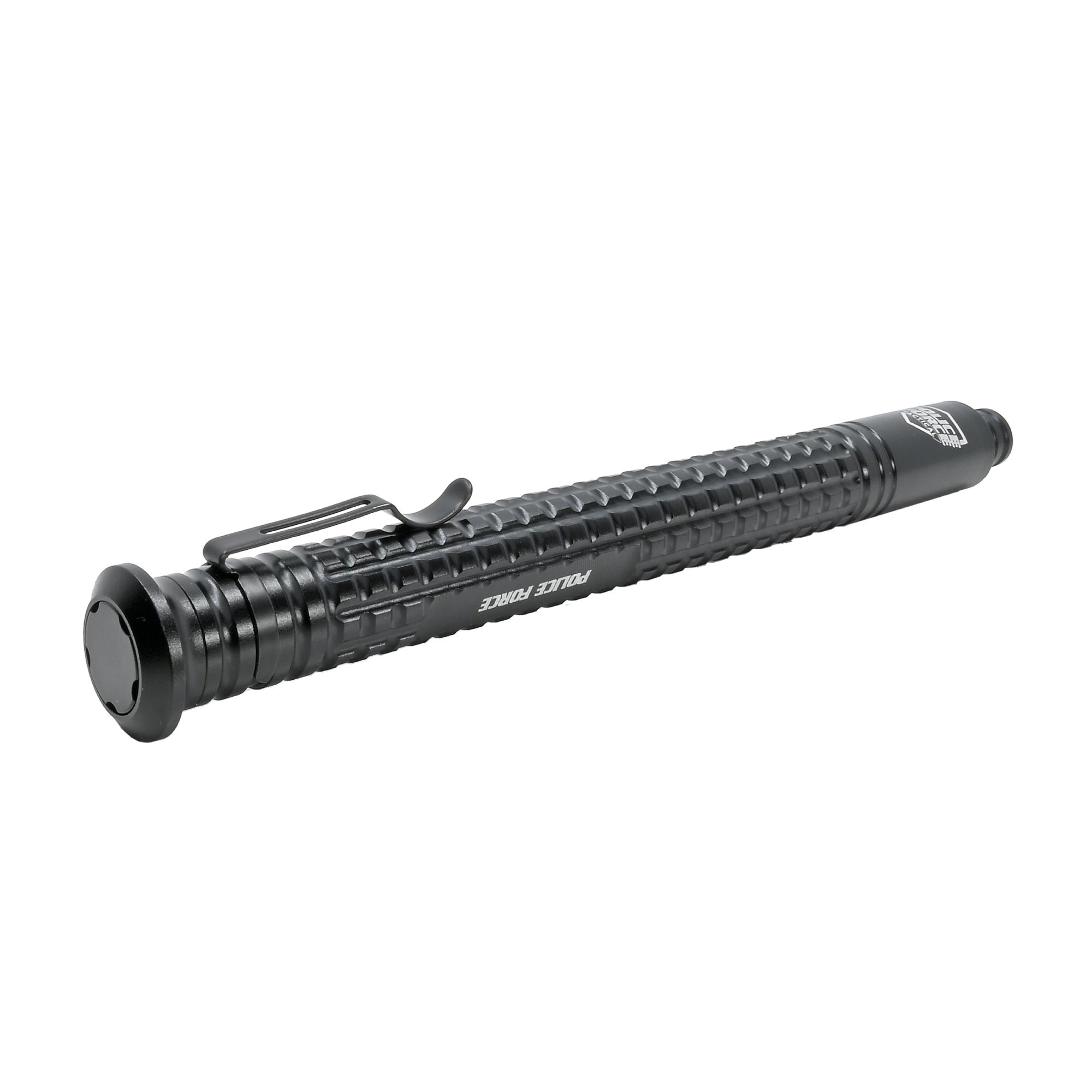 The new Police Force 21 inch Tail Press EZ Close expandable Steel Baton opens with a flick of the wrist and locks in place automatically. Collapsing it is easy- no banging on concrete necessary. Simply press the EZ close tail switch and the baton collapses with a light push against your palm. Its grenade texture allows for a firm grip in any situation. At only 9” contracted it can easily fit in a pocket or purse, or the attached belt clip can be used for quick access. With the window breaker tip, the baton can be used to escape from your car or home.