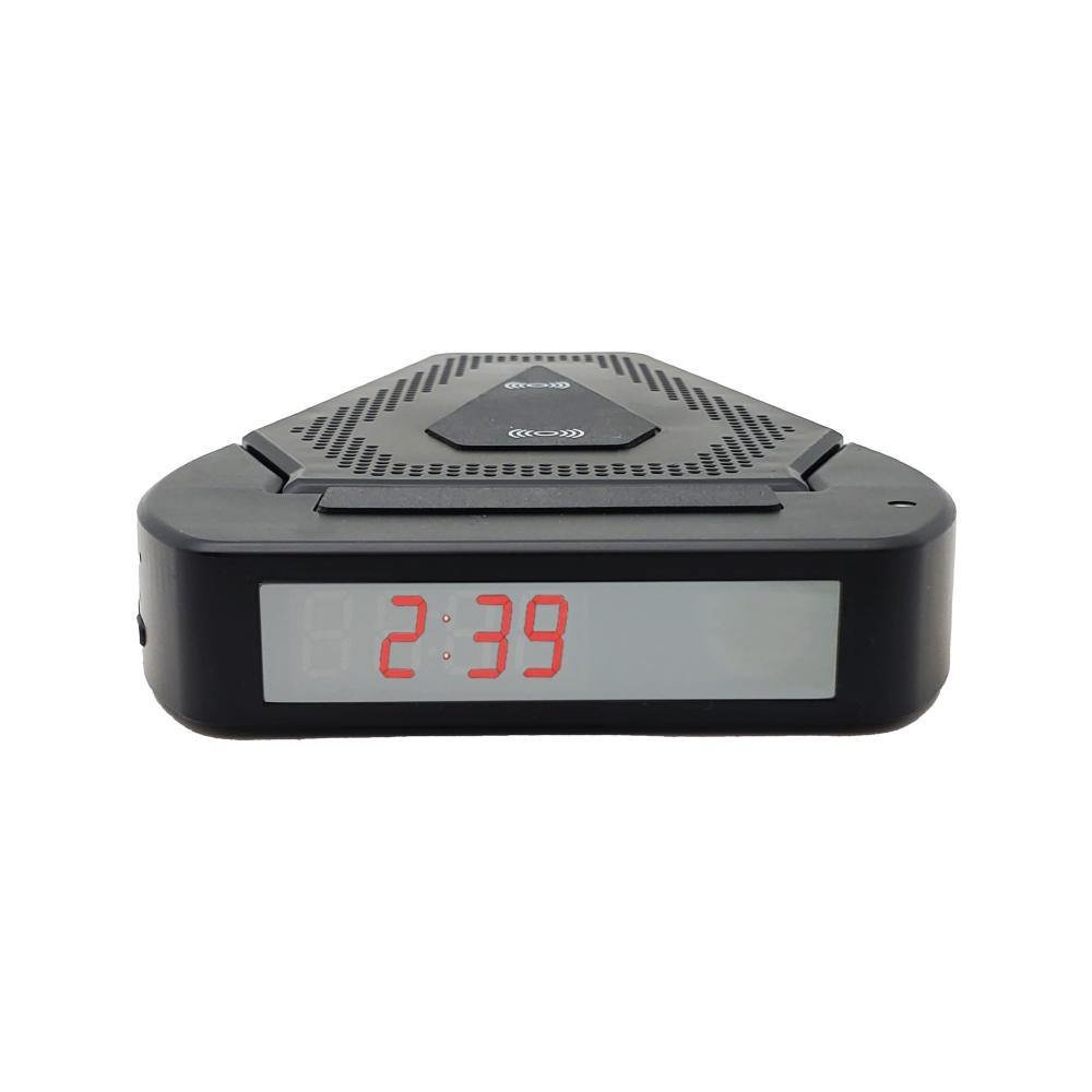 No need to worry about a battery running out since the unit is AC-powered for continuous operation. The hidden camera lens is unnoticeable on the front of the unit and provides a very wide 120-degree angle of view with 1080p resolution.
